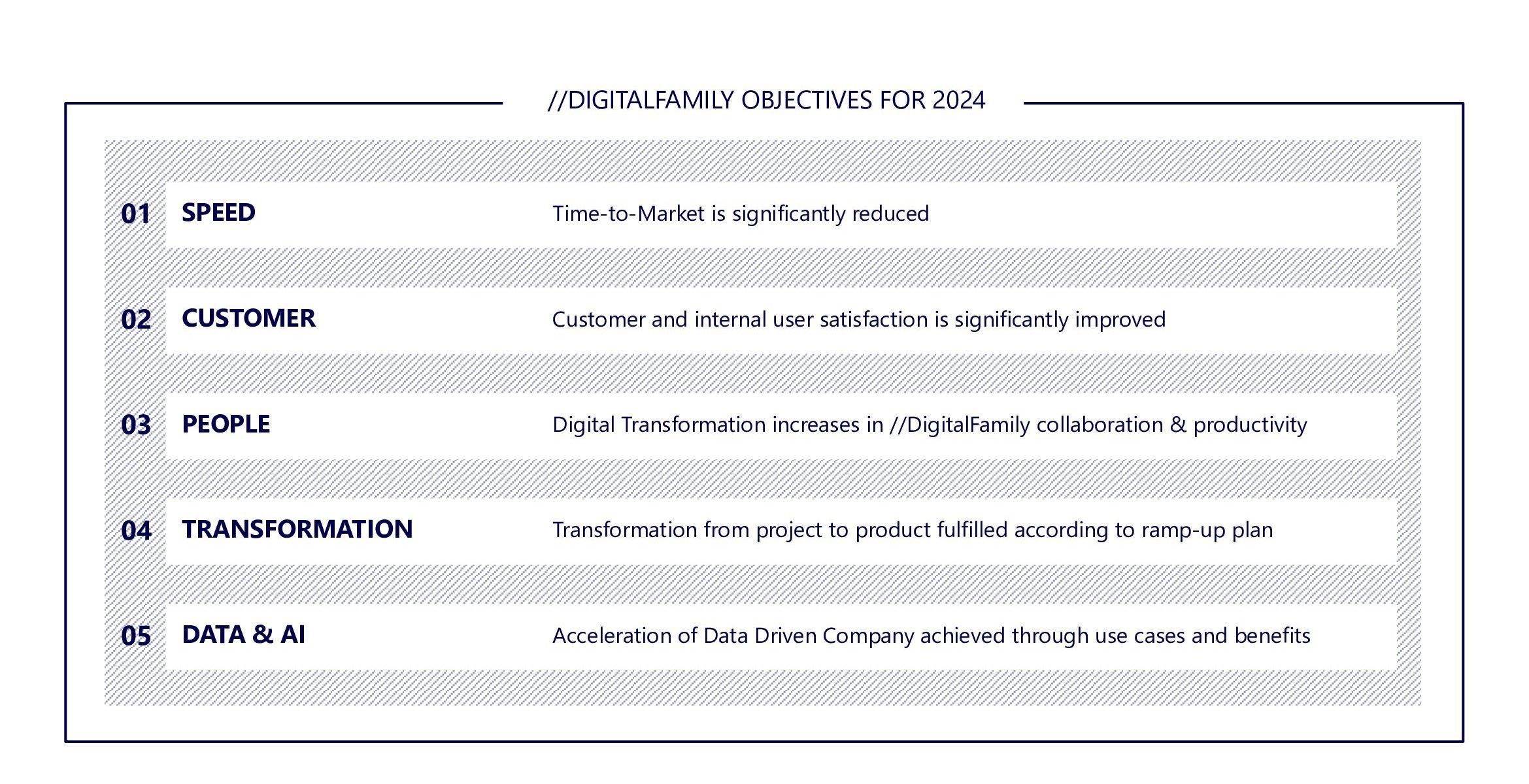 In der Porsche //DigitalFamily werden jedes Jahr eigene organisationsübergreifend geltende Ziele definiert. Für 2024 verfolgt Porsche bei der digitalen Transformation fünf konkrete Ziele: eine höhere Geschwindigkeit, Kundenfokussierung in Form einer hohen Kunden- und Nutzerzufriedenheit, den Wandel hin zu mehr Agilität – gepaart mit Arbeitgeberattraktivität durch eine sehr gute Zusammenarbeit in der Porsche //DigitalFamily und einer stark datengetriebenen Entwicklung digitaler Produkte.