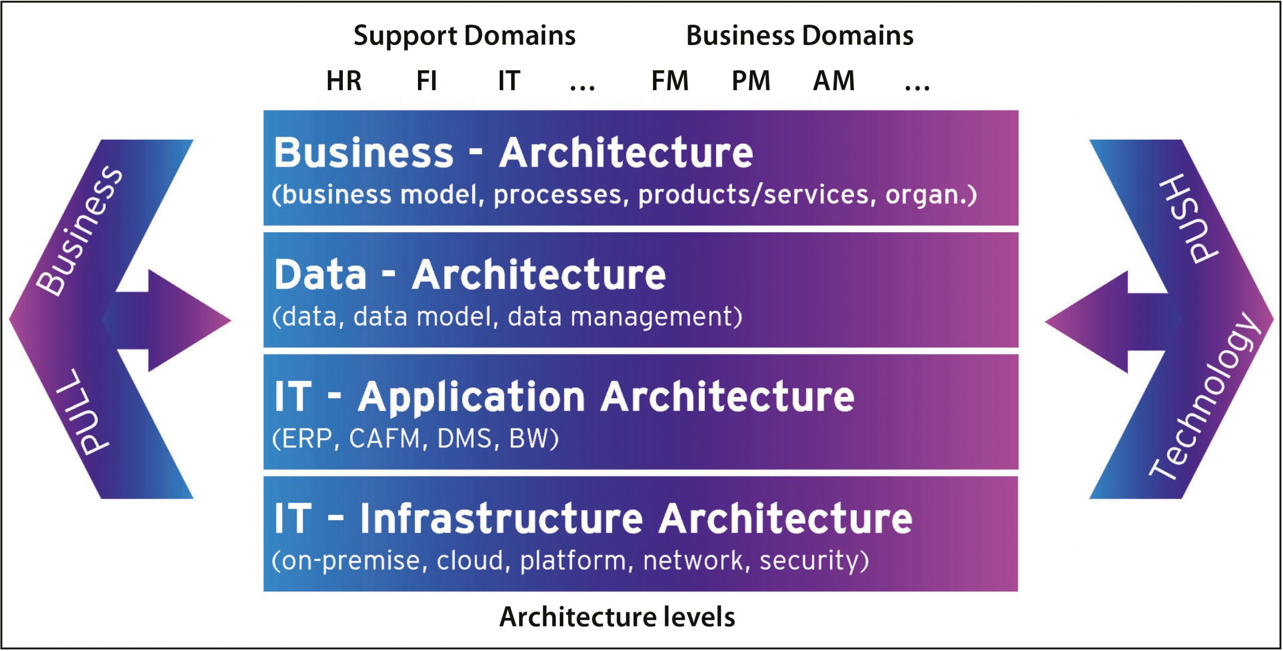 Erfolgreiche digitale Transformation im CREM erfordert das Zusammenspiel dreier Ebenen: