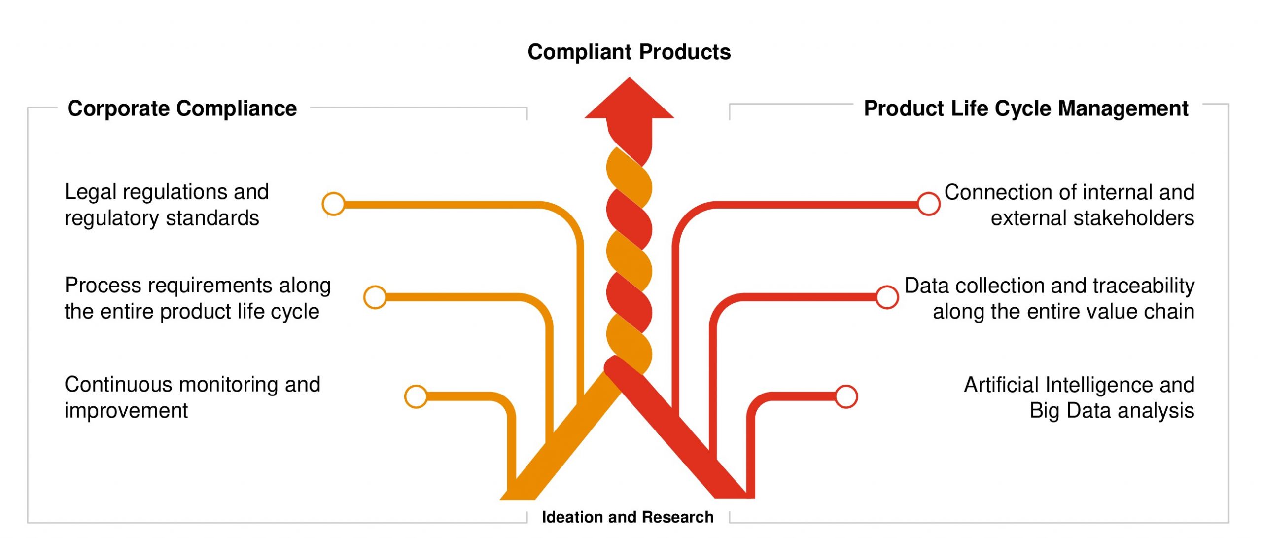 The early consideration of regulatory requirements over the entire product lifecycle is essential to stay ahead of the competition. This starts in the ideation phase, in which possible compliance requirements for a product must be identified. During development, these requirements must be continuously reviewed, tracked, and, if necessary, adapted. The advantages of integrating compliance into this process at an early stage are manifold:
