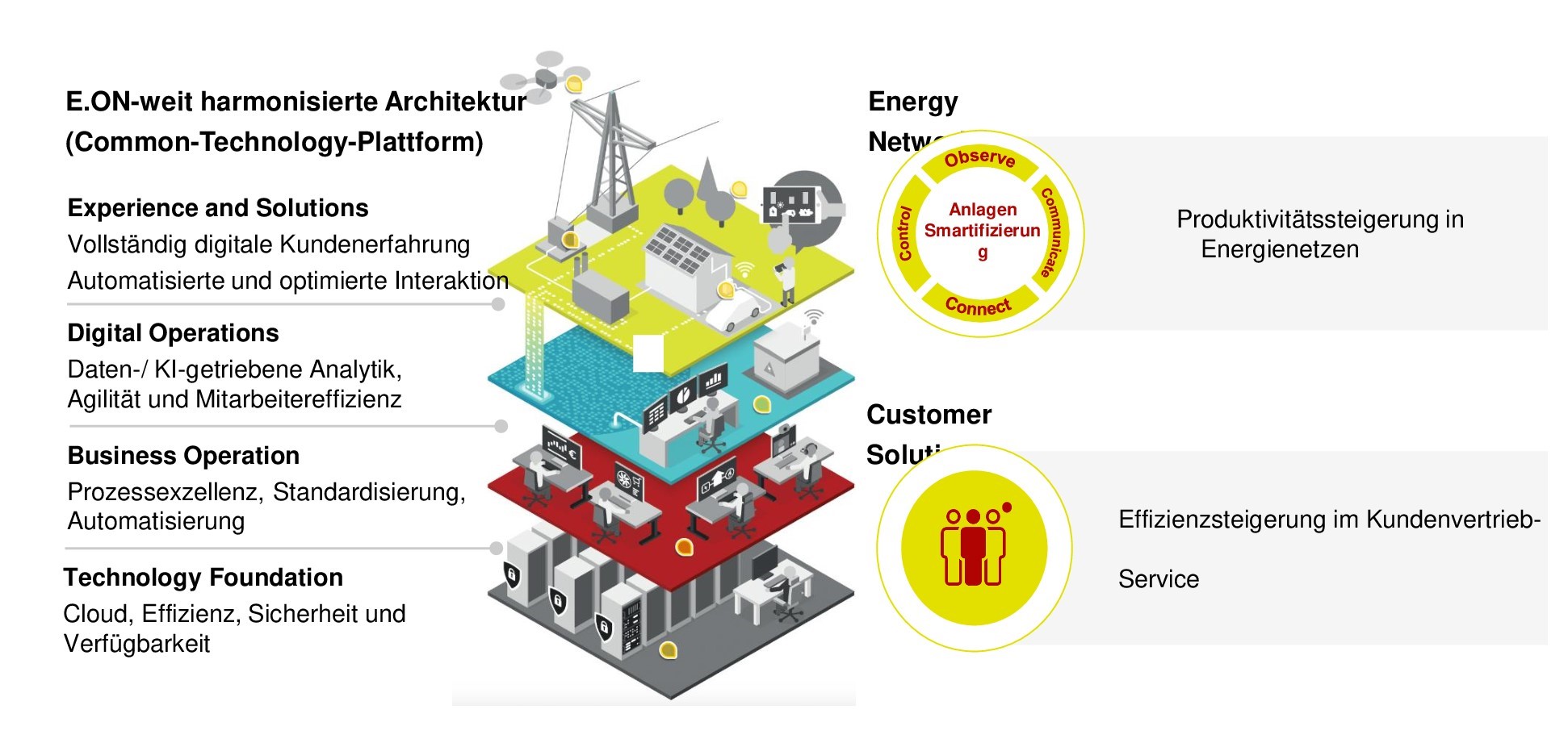 Aufgrund unterschiedlich ausgeprägter Regulierungen in den verschiedenen EU-Märkten ist das Geschäft von E.ON stark regionalisiert und wird von eigenständigen Konzerngesellschaften mit eigenen Prozessen und Systemen betrieben. Um die ambitionierten EU-Klimaziele einheitlich zu erreichen, müssen Prozesse übergreifend standardisiert werden, um den Umbau der Energiesysteme in der vorgegebenen Zeit bewältigen zu können. Eine Standardisierung der Prozesse ist jedoch nur durch eine Harmonisierung und Konsolidierung der dafür eingesetzten Anwendungssystemen und Daten möglich. Nur so können Digitalisierung und Automatisierung effizient umgesetzt und die notwendige Skalierung und Geschwindigkeit beim Netzausbau erreicht werden. Schlussendlich ist die Standardisierung auch die Voraussetzung für den Einsatz von künstlicher Intelligenz (KI), die weiteren Möglichkeiten zur effizienten Digitalisierung bietet.