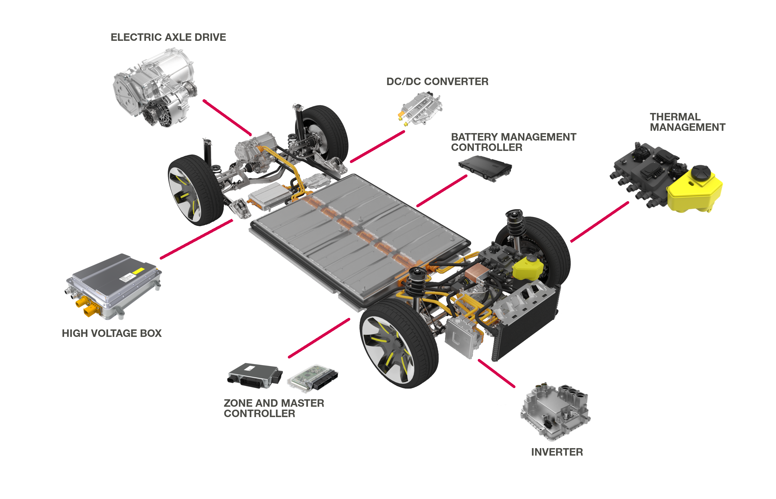 Beispielhafte Komponenten von Vitesco Technologies für batterie-elektrische Fahrzeuge (Quelle: Vitesco Technologies)