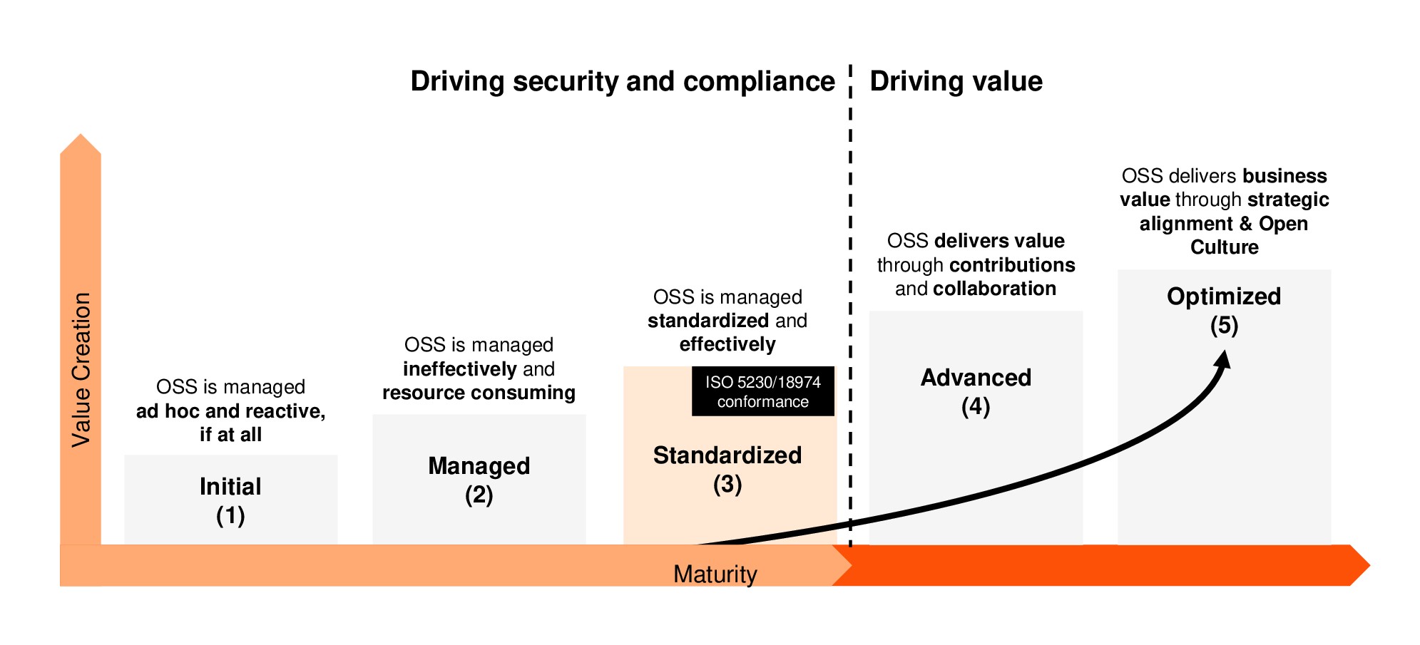 Je höher der Reifegrad, desto größer der messbare Beitrag von OSS zum Unternehmenserfolg. Wer sein OSS-Management kontinuierlich weiterentwickelt, transformiert Open Source von einem operativen Tool zu einem strategischen Hebel für Innovation, digitale Souveränität, Risikoreduktion und nachhaltige Wertschöpfung – intern wie entlang der gesamten Wertschöpfungskette.