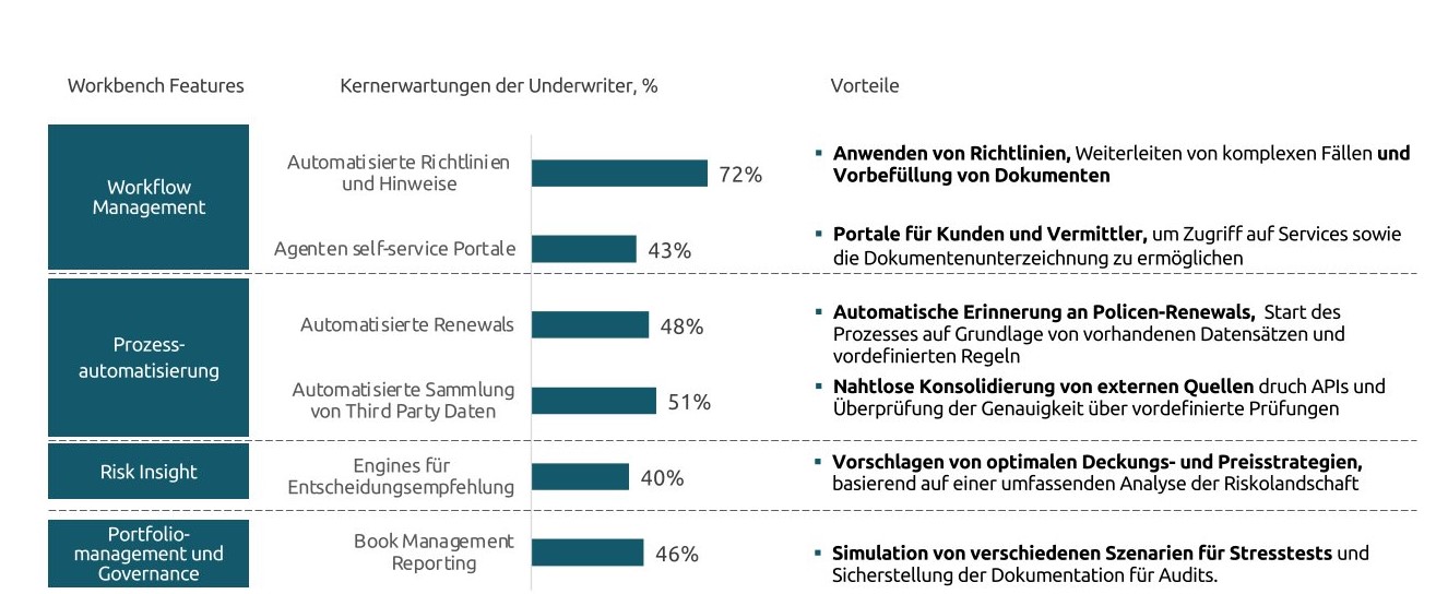 Underwriting Workbenches können Arbeitsaufkommen reduzieren, Prozesse optimieren und die Risikobewertung verbessern. Quelle: Capgemini World P&C Report 2024