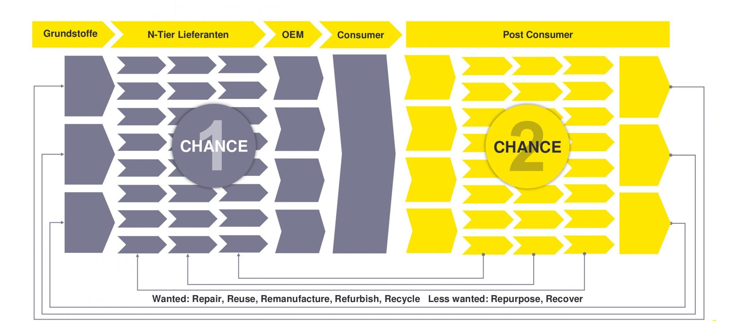 Bei vielen Produkten ist bis jetzt noch Folgendes zu beobachten: Es spielt am Anfang ihres Lebens keine große Rolle, welche Rohstoffe eingesetzt werden. Am Ende werden die wertvollen